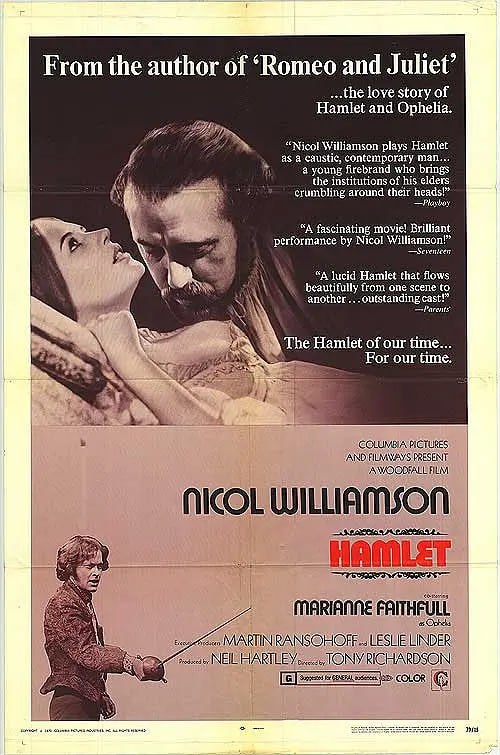 丹麦王子哈姆雷特(尼科尔•威廉森 Nicol Williamson 饰)在接到了父亲的死讯之后匆匆赶回国内,让哈姆雷特没有想到的是,继承王位的是他的叔叔克劳狄斯(安东尼•霍普金斯 Anthony Hopkins 饰),在不久之后,克劳狄斯迎娶了哈姆雷特的母亲,就这样,昔日的叔叔,如今成为了哈姆雷特的继父。 一天,哈姆雷特的面前出现了父亲的鬼魂,父亲告诉他,自己是被克劳狄斯下药毒死的,他希望儿子能够为自己复仇。回国后的哈姆雷特邂逅了纯洁美丽的女孩奥菲利亚(玛丽安娜•菲斯福尔 Marianne Faithfull 饰),谁知,他却错手下毒害死了奥菲利亚的父亲,导致奥菲利亚自杀。