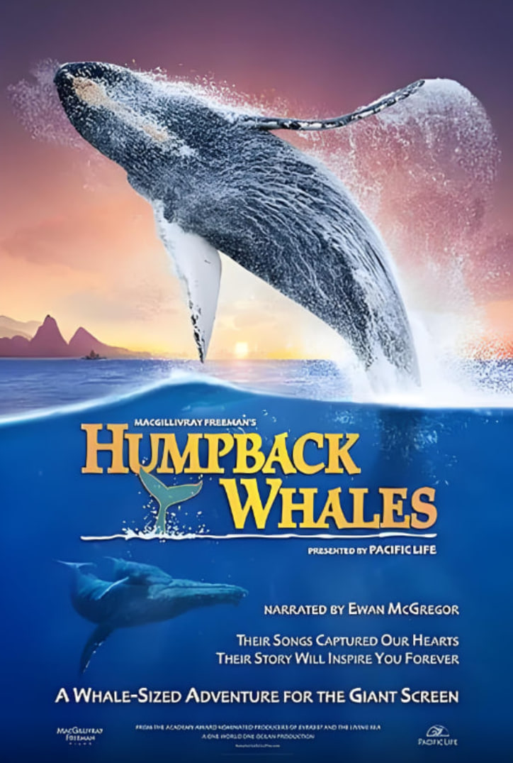《座头鲸》由两届金球奖提名人伊万·麦克格雷格担任旁白,带领观众走进自然界最令人敬畏的海洋哺乳动物之一——座头鲸的神秘世界。影片以阿拉斯加、夏威夷和汤加偏远岛屿的壮丽海域为背景,带领观众近距离观察这些鲸鱼如何交流、歌唱、觅食、嬉戏以及照顾幼鲸。座头鲸首次采用 IMAX® 3D 摄影机拍摄,遍布全球各大洋。50 年前,座头鲸几乎濒临灭绝,但如今它们的数量正在缓慢而显著地恢复。加入研究团队,揭开座头鲸的秘密,了解为什么座头鲸是所有鲸鱼中最具表演天赋的,为什么它们能唱出令人难忘的歌声,以及为什么这些聪明的 55 英尺长、50 吨重的动物每年要往返迁徙 10,000 英里。