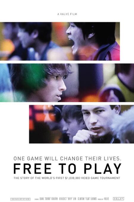 《Free To Play》是一部纪录长片。影片跟随三位不同国家的职业电竞选手,讲述他们在首届Dota 2国际邀请赛中为一百万美元的奖金奋力拼搏的故事。近几年来,电子竞技开始大幅流行,已经跻身于当今人口基数众多的竞技运动行列中。百万奖金的赛事改变了整个电竞圈的格局,而对于正值巅峰时期的顶尖选手来说,这样的机会也是千载难逢。经过Valve的精心打造,影片完整地记录了选手们在顶尖对决的过程中遇到的挑战和做出的牺牲。