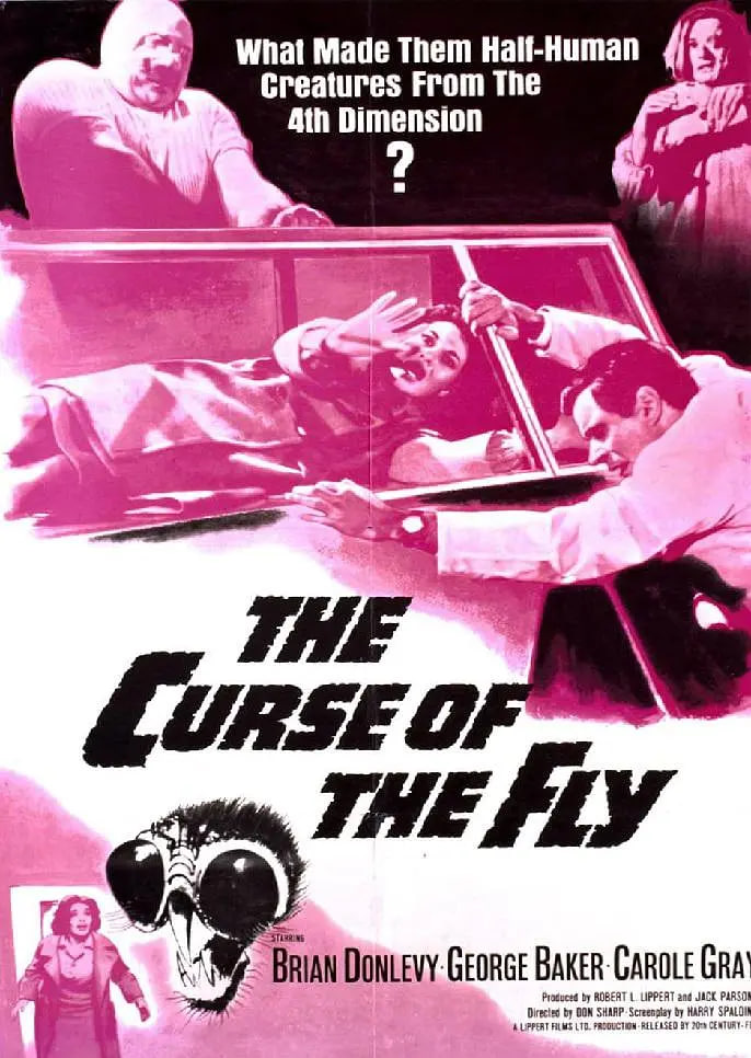 一晚,在开往蒙特利尔的路上,马丁·德朗布尔(乔治·巴克 George Baker饰)邂逅了年轻美丽的女孩帕特里夏·斯坦利(卡罗尔·格雷 Carole Gray饰),两人迅速坠入爱河。初见帕特里夏时,她身上只穿着内衣,面露惊色的一路狂奔。她没有告诉马丁自己刚从精神病院逃跑的秘密,而马丁同样隐藏了一个惊天秘密:他和他的父亲亨利·德朗布尔(布莱恩·唐莱维 Brian Donlevy饰)正在进行一项疯狂而激进的实验。他们正在研制一台能够将物体传输到另一个地方的机器。与此同时,马丁身体里隐性的苍蝇基因正在苦苦折磨着他。 《变蝇人的诅咒》是1958年的《变蝇人》和1959年的《变蝇人回归》的终结篇。区别于之前两部系列影片,本部电影在英国摄制完成。然而,这部多年罕见的电影,是“变蝇人”系列电影中唯一一部没有录像带或光盘发布的版本,甚至没有在国内首映。直到2007年,它终于首映并与其他原系列电影一起发行出售。