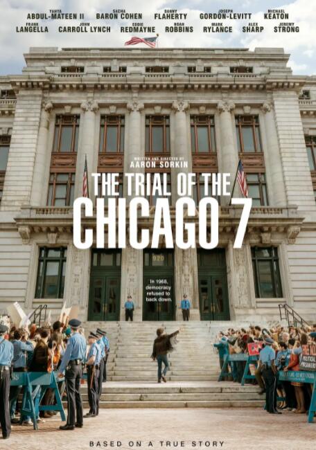 1968 年民主党全国代表大会上的和平抗议演变成了与警察和国民警卫队的暴力冲突。抗议活动的组织者包括艾比·霍夫曼、杰里·鲁宾、汤姆·海登和鲍勃·席勒,他们被指控阴谋煽动暴乱,随之而来的审判是历史上最臭名昭著的几场审判之一。