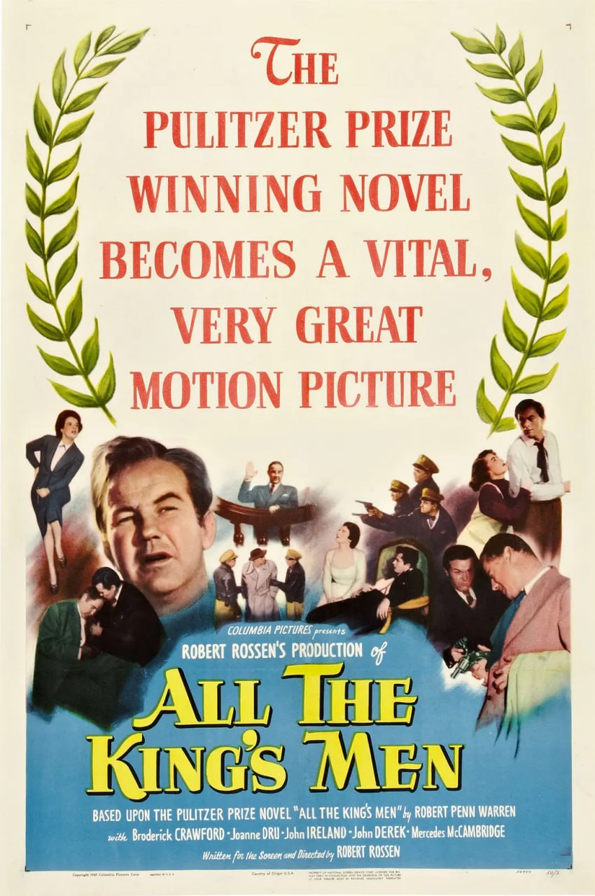 改编自劳勃潘华伦的普立兹奖小说《国王的手下》,曾荣获第二十二届奥斯卡金像奖最佳影片,男主角布罗德里克.克劳福德及女星马塞蒂斯.麦坎布里奇分获奥斯卡影帝及女配角奖。剧情描述充满正义感的新闻记者杰克波顿去采访肯诺马郡竞选郡出纳局长的威利史塔克,史塔克是一个力求上进,充满爱心的人,但是他失败了。后来他又经过两次参选当上了州长。然而当上州长的史塔克开始滥权舞弊,引发议会对他的弹劾,无法无天的史塔克却发动群众示威,并获得胜利。民主、自由、法律已无法制服的情况下,被他陷害的对手的儿子以暴制暴,在议会外开枪结束了他的生命。本片是奥斯卡历史上第一部夺得大奖的政治电影。大胆剖析美国政客政治形式,更毫不客气的指出群众盲目拥护是造成政客滥权舞弊的主要原因。