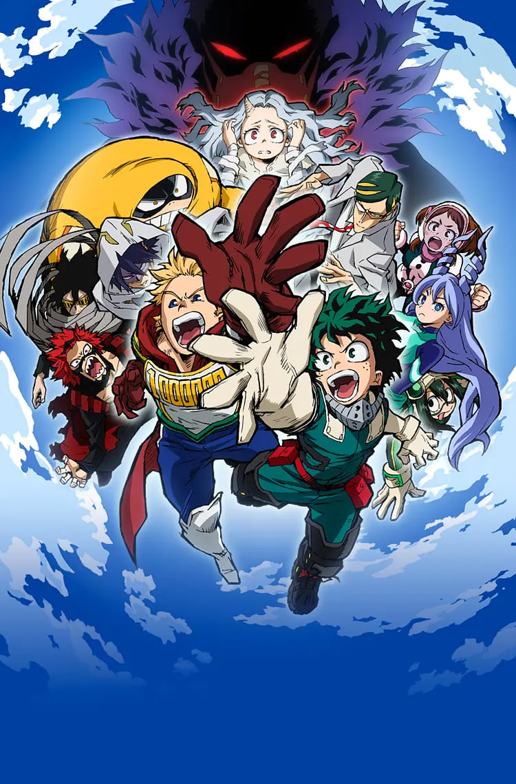 这是一个人类理所当然拥有超能力“个性”的世界。被称为「笨久」的“无个性”少年·绿谷出久与憧憬的No.1英雄欧尔麦特相遇,被其发现绿谷隐藏的英雄资质,从欧尔麦特手中继承了“个性” One For All。笨久进入了英雄辈出的名门高中·雄英高中,以成为用“个性”拯救社会和人们的英雄为目标,和同学们一起度过了充满考验的每一天。 虽然打倒了宿敌All For One,但欧尔麦特也用尽了力量,便从职业英雄隐退。笨久继承了他的遗志,拿到了「职业英雄临时执照」,又接近了“最棒的英雄”一步。这时,笨久遇见了雄英三巨头中的一位,在职业英雄夜目爵士手下进行校外实习的三年级学生·通形未吏生。其压倒性的实力,让笨久更加向往在职业英雄事务所参加可以真正进行英雄活动的校外实习。另一边,不安分的<Villain>团体·死秽八斋会的年轻头领解修师,与继承了All For One意志的敌人<Villain>联军首领死柄木吊进行了接触。之后,在解修师的身旁,出现了一位少女的身影。 笨久与英雄候补生们即将与新的 “威胁” 进行战斗,新的 “使命” 挑战也开始了!!